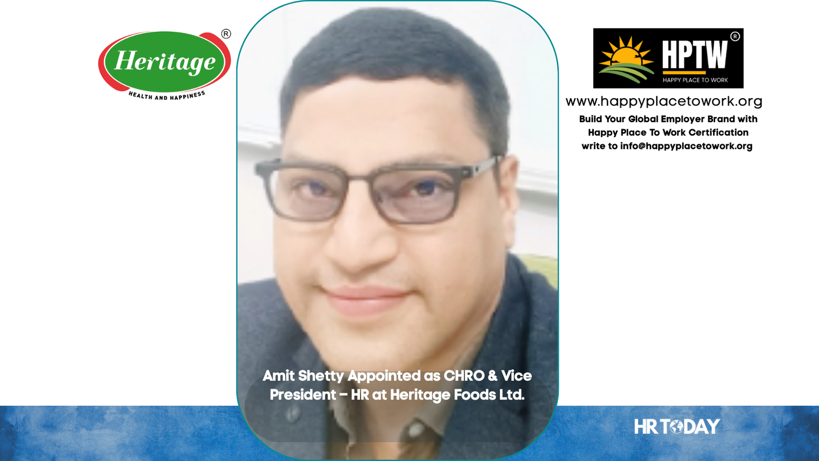 Hyderabad, Telangana, India, October 2025 – Heritage Foods Ltd., one of India’s largest and most respected FMCG companies, has announced the appointment of Amit Shetty as its new Chief Human Resources Officer and Vice President – HR. In his new role, Amit will lead the company’s human capital strategy across its Dairy and Renewable Energy divisions, driving initiatives in talent management, capability building, employee engagement, and organizational transformation.