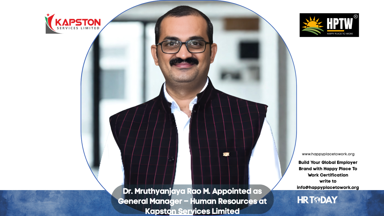 Hyderabad, Telangana, India, October 2025 — Dr. Mruthyanjaya Rao M. has joined Kapston Services Limited as General Manager – Human Resources, marking a key addition to the company’s senior leadership team. In his new role, he will drive the strategic HR agenda, focusing on organizational development, learning and development, talent management, employee experience, and compensation strategy to strengthen Kapston’s human capital ecosystem. His appointment aligns with the organization’s vision of nurturing a high-performance, people-centric culture across its 30,000+ workforce nationwide.