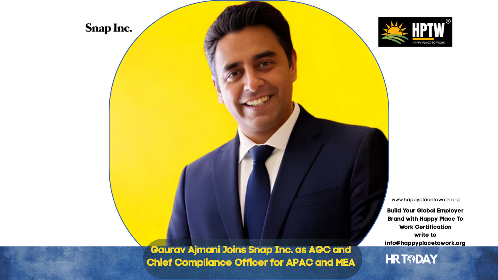 Tags: AmazonCompliance OfficerExecutive AppointmentGaurav AjmaniHappy Place to Work CertificationHPTWLeadership AppointmentLegal LeadershipSnap Inc.