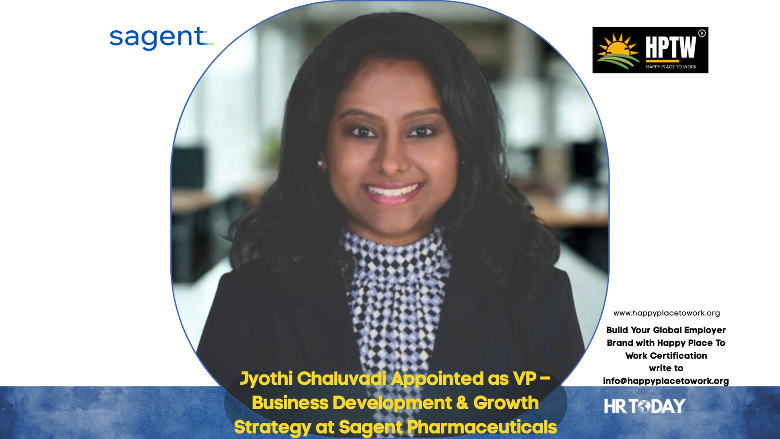 Hyderabad, Telangana, India, January 2026 — Sagent Pharmaceuticals, a forward-thinking specialty injectables company built around customers and innovation, has announced the appointment of Jyothi Chaluvadi as Vice President – Business Development & Growth Strategy.