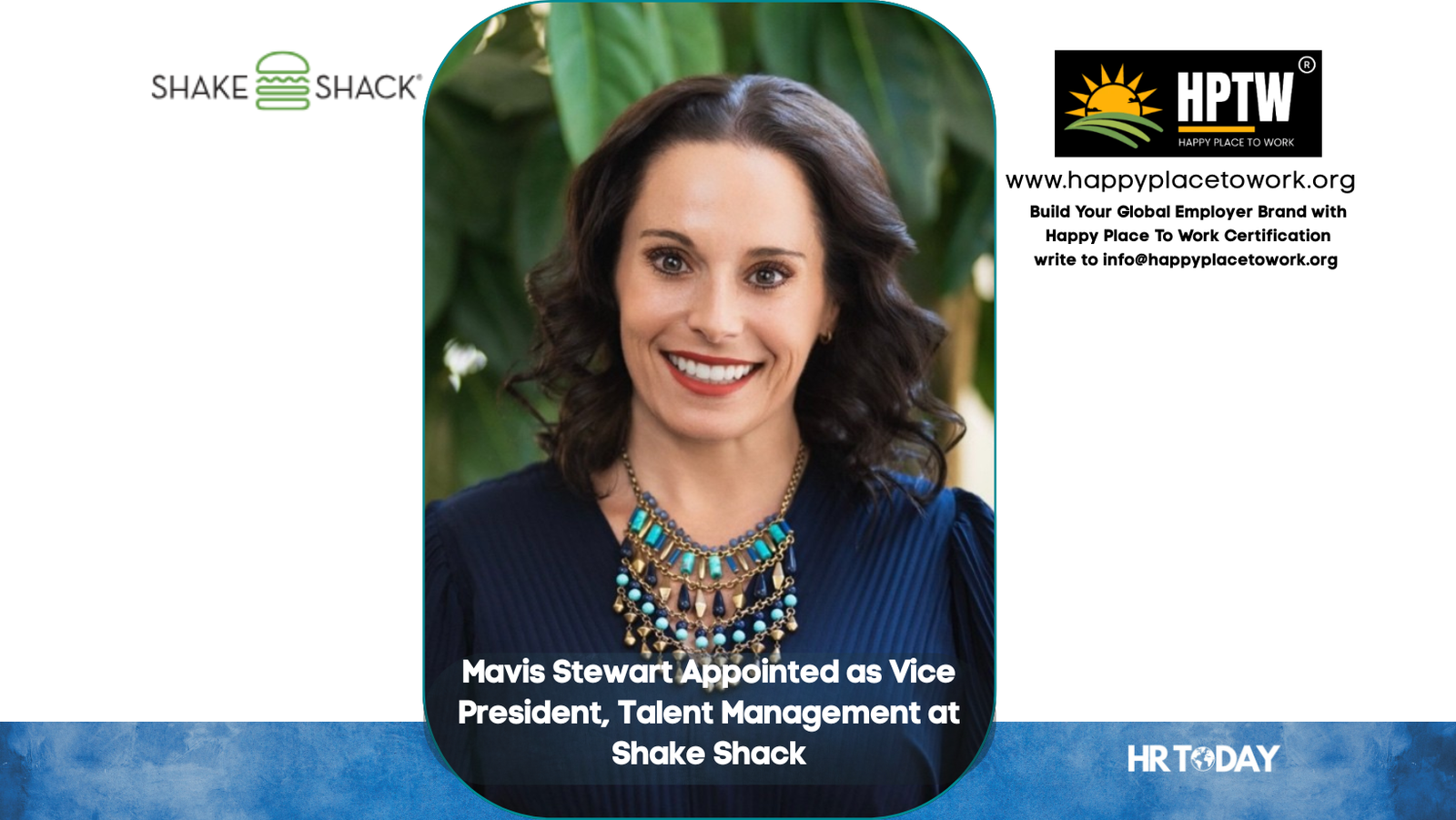 Tags: Employee EngagementHappy Place to Work CertificationHPTWHR LeadershipHRTODAYLeadership AppointmentMavis StewartPeople StrategyShake ShackTalent AcquisitionTalent developmentTalent ManagementVice President Talent Management