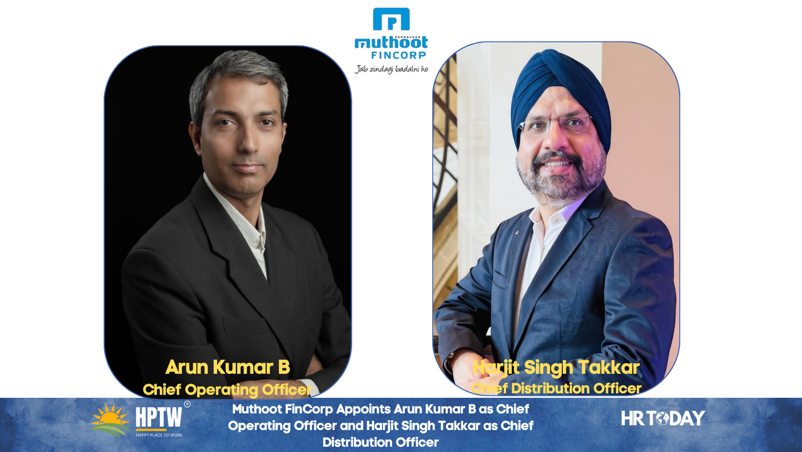 Thiruvananthapuram, India, February 2026 – Muthoot FinCorp (MFL), the flagship financial services company of the 138 year old Muthoot Pappachan Group (Muthoot Blue), recently appointed Arun Kumar B as Chief Operating Officer and Harjit Singh Takkar as Chief Distribution Officer as part of efforts to strengthen its execution and expand distribution Pan-India.