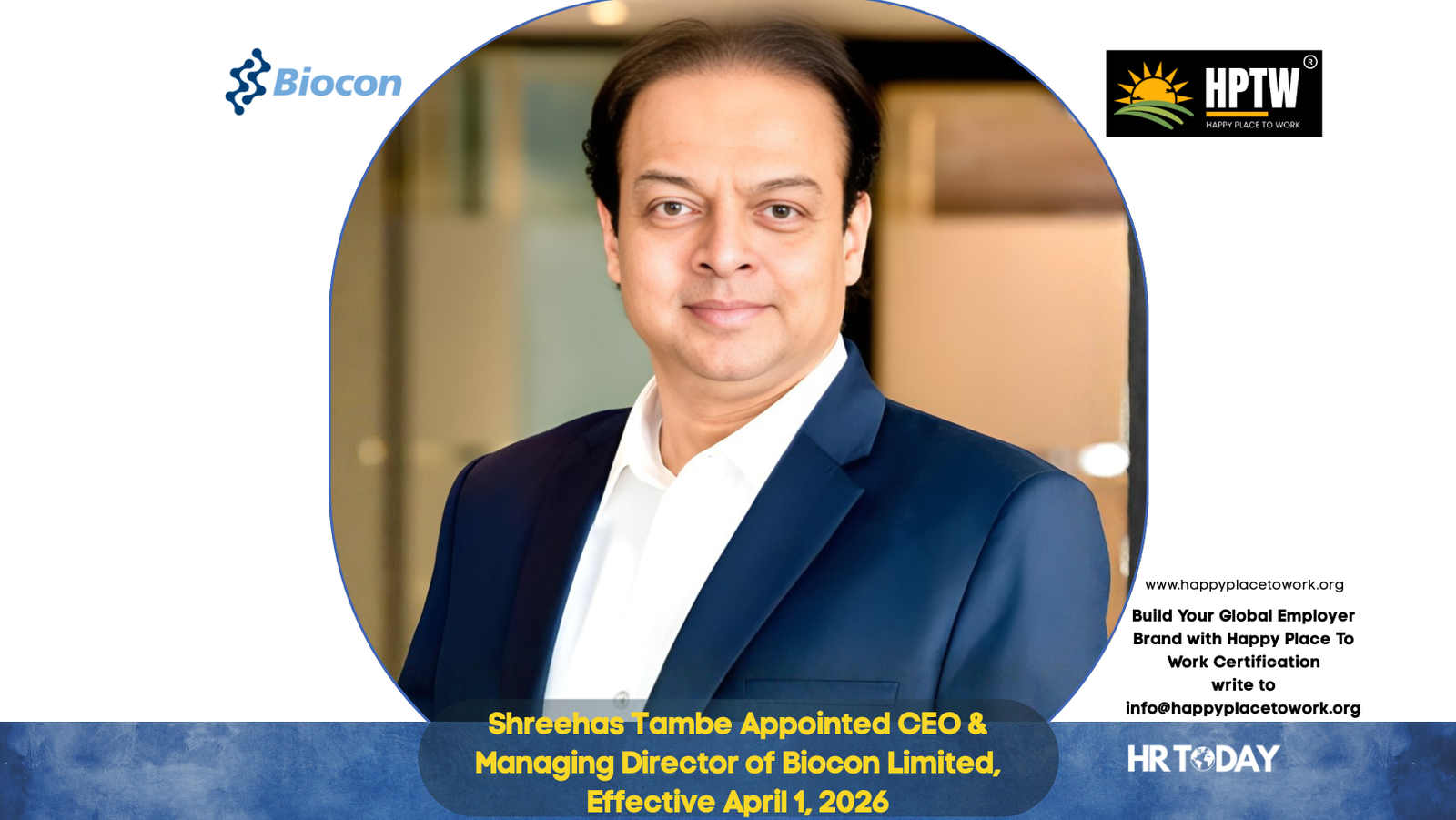 Bengaluru, Karnataka, India, March 2026 – Biocon Limited (BSE: 532523) (NSE: BIOCON), today announced the appointment of Shreehas Tambe as its Chief Executive Officer and Managing Director, effective April 1, 2026, following approvals from the Nomination & Remuneration Committee and the Board. As the first CEO of Biocon Limited he will lead the combined platform spanning biosimilars and generics, strengthening the Company’s ability to operate at scale and compete effectively in global markets.