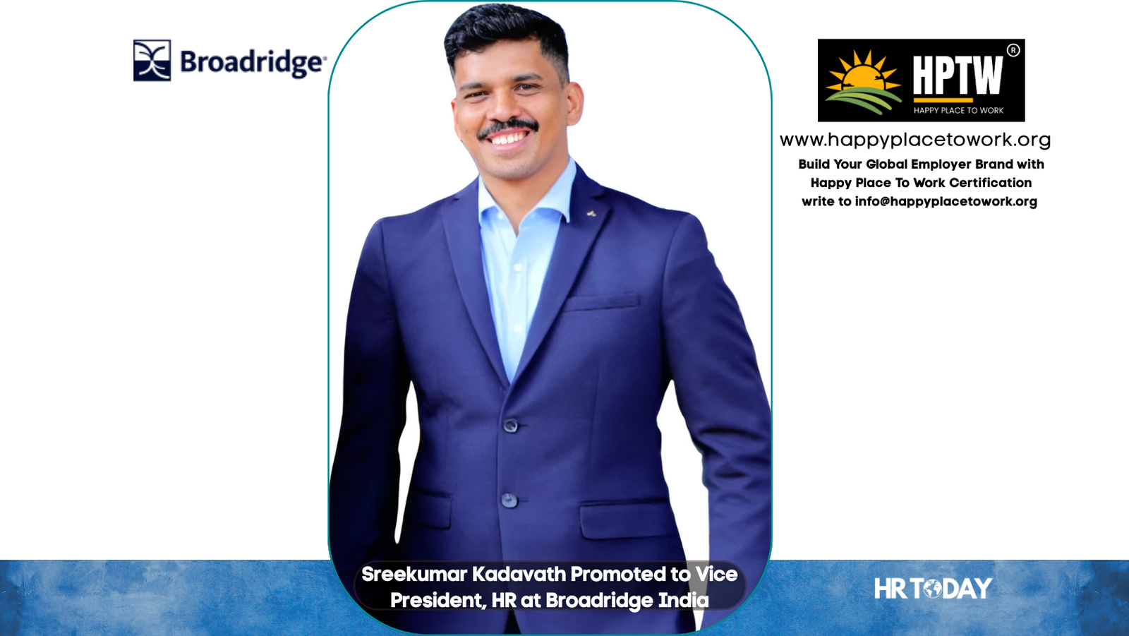 Bengaluru, Karnataka, India, September 2025 — Sreekumar Kadavath has been promoted to Vice President, HR at Broadridge India. In this elevated role, he will spearhead the organization’s people strategy, drive HR transformation, and continue strengthening associate experience for its rapidly growing workforce in India.