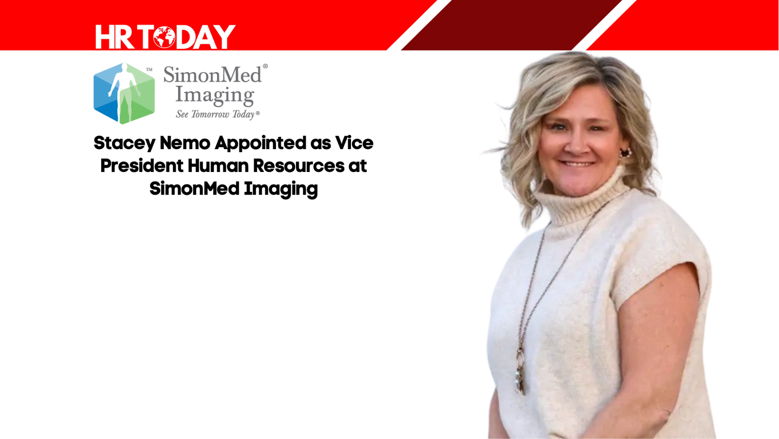 Scottsdale, Arizona, United States, August 2025 – Stacey Nemo has taken on the role of Vice President Human Resources at SimonMed Imaging. In this capacity, she will be responsible for leading human resources strategy, enhancing employee engagement, aligning people initiatives with business objectives, and supporting organizational growth for the largest physician-owned outpatient medical imaging provider in the nation.