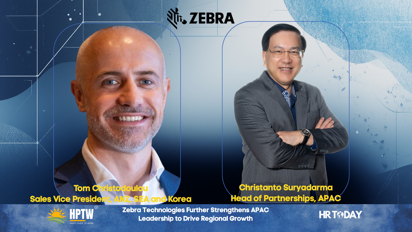 - The strategic appointments include Tom Christodoulou, leading sales for ANZ, SEA and Korea, Christanto Suryadarma heading the new APAC Partnerships role, and Ryan Goh also guiding Zebra’s Global OEM business in addition to the region.